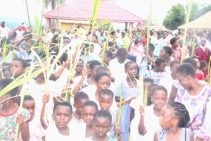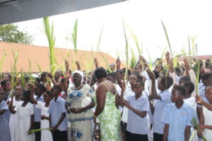 His Excellency Most Rev. Julien Kabore, Apostolic Nuncio to Ghana, joined the people of God of the Our Lady of Annunciation Cathedral at Sefwi Wiawso in the Western North Region of Ghana to celebrate this year’s Palm Sunday, with an invitation to them to see the Cross as the great yes of God to humanity.