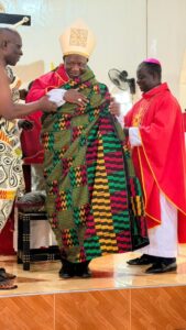 Concelebrating the Mass with the Nuncio was the Most Rev. Samuel Nkuah-Boateng, Bishop of the Catholic Diocese of Wiawso, and Very Rev. Fr. Eric Kusi Appau, the Cathedral Administrator.