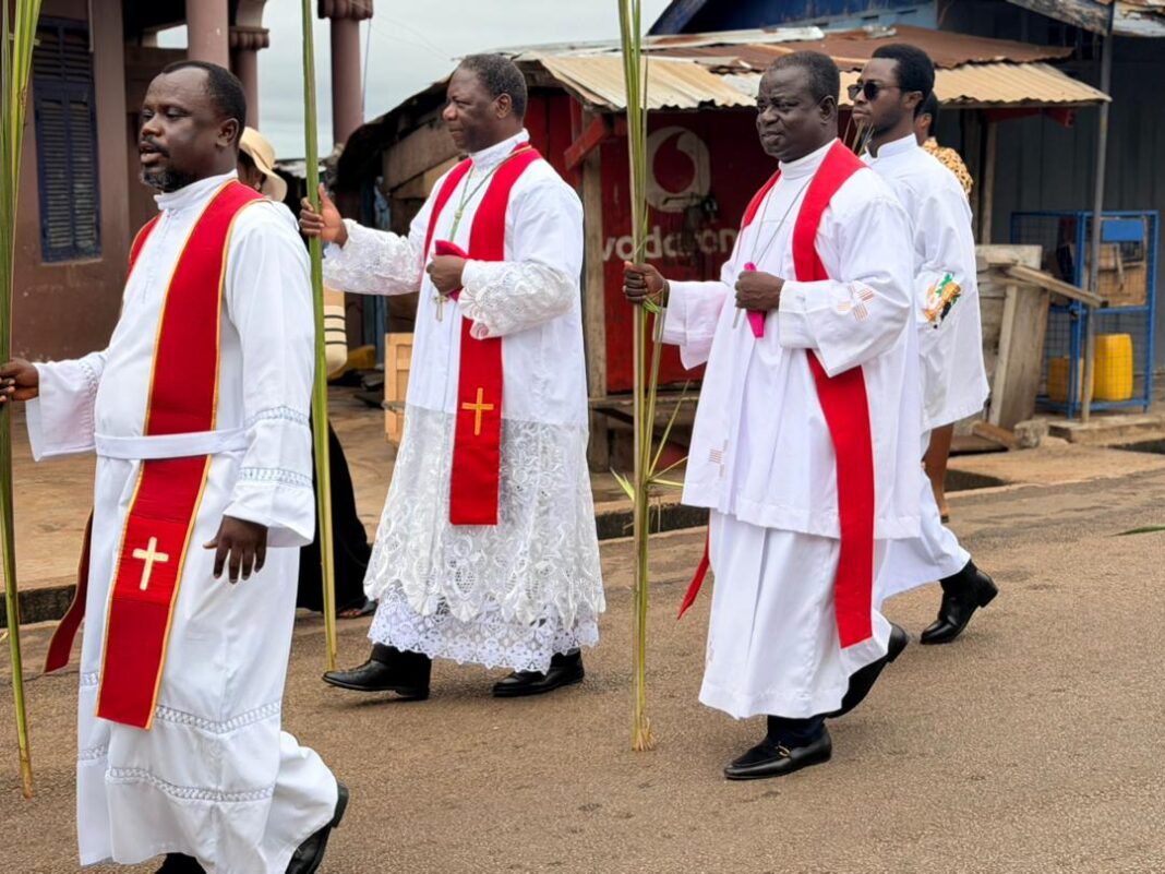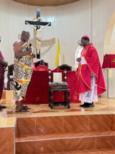 His Excellency Most Rev. Julien Kabore, Apostolic Nuncio to Ghana, joined the people of God of the Our Lady of Annunciation Cathedral at Sefwi Wiawso in the Western North Region of Ghana to celebrate this year’s Palm Sunday, with an invitation to them to see the Cross as the great yes of God to humanity.