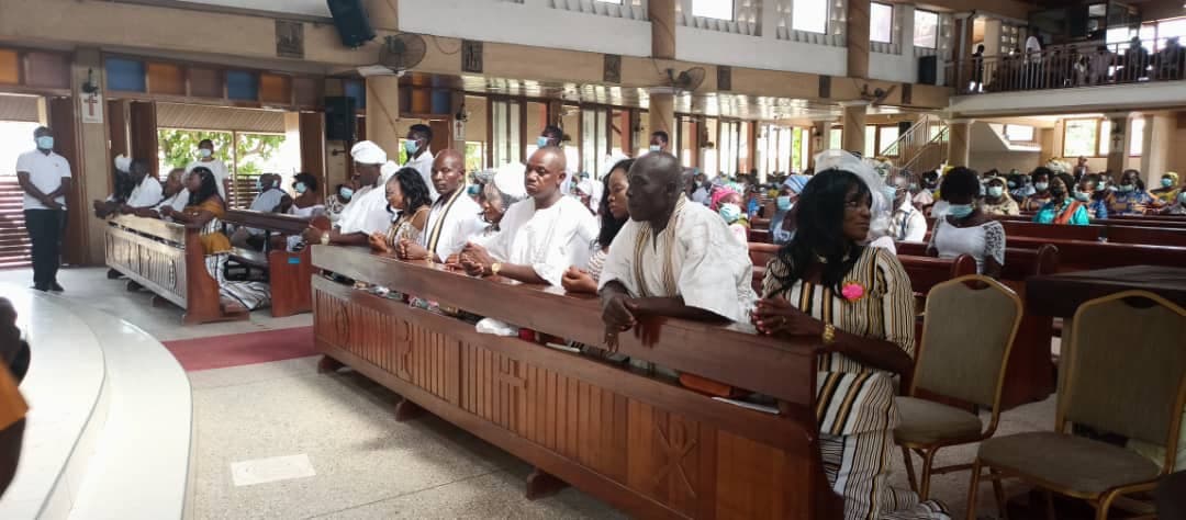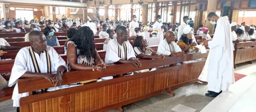 The Nuptial Mass, the first in over a decade of the Parish was officiated by five priests including Rev. Fr. Anthony Asare, the Parish Priest, Rev. Fr. Daniel Attipoe, the Assistant Parish Priest, Rev. Fr. Alphonse Bulloro, the main celebrant, Rev. Fr. Albert Apewe Amonzem and Rev. Fr. Richard Gilbert Arhin.